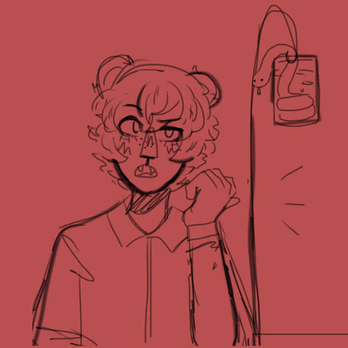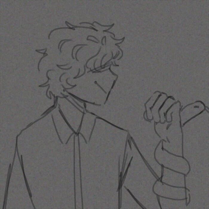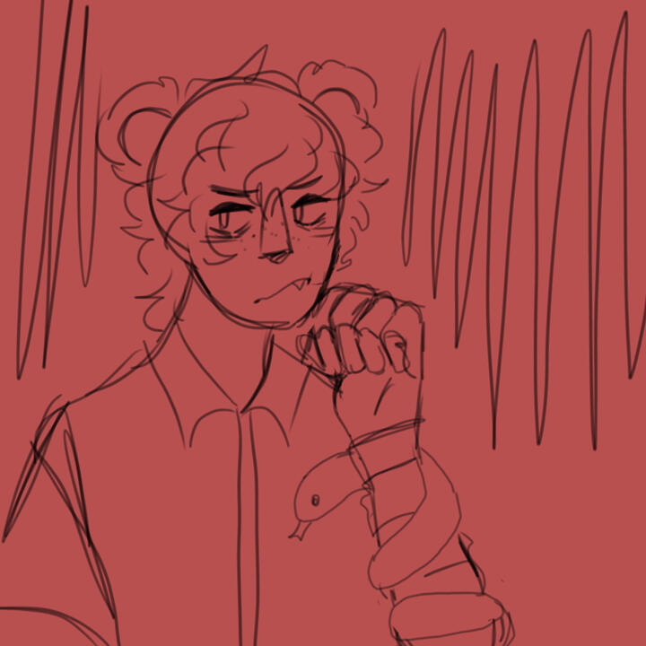 I look back up and I am no longer struggling to breath. A boy with short blond hair sits in front of me, his hair is definitely not the only short thing about him. If my mind wasn’t so foggy, I could probably count a few of the freckles on his face. A snake slithers down his arm. Everything is so familiar and yet so far.?: I snuck him in from my old hospital! I know he is dangerous or whatever, but he’s my best friend. You can’t tell anyone about him! Promise me you won’t!A: I promise.?: Good!